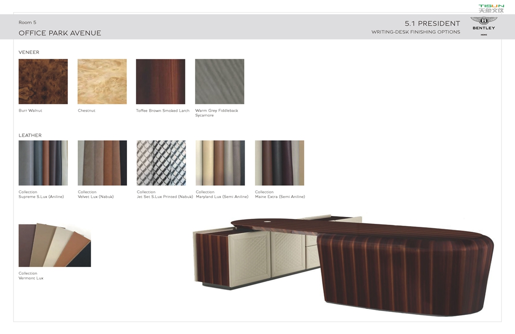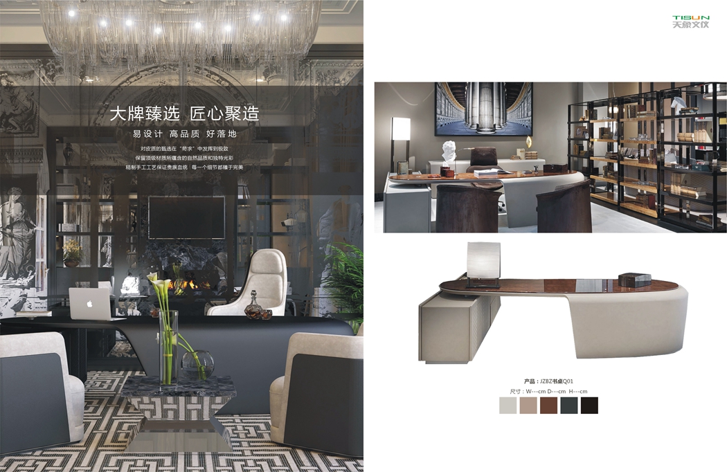 此款辦公家具-匠心獨(dú)到的設(shè)計(jì),氣派非凡,大班本色,表露無(wú)遺,精選皮料,手工精細(xì),完美無(wú)瑕。班臺(tái)面轉(zhuǎn)折面線條流暢,每一處設(shè)計(jì)都與整個(gè)環(huán)境相融合,處處體現(xiàn)了定制辦公家具廠設(shè)計(jì)師設(shè)身處地為使用者著想的用戶思維方式。